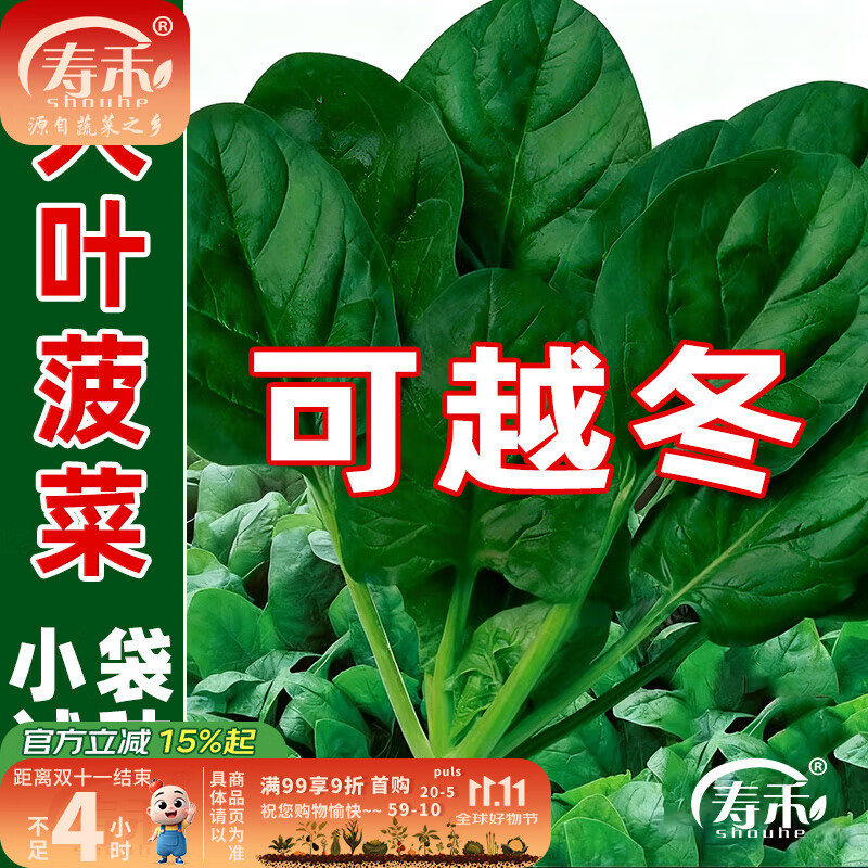 包邮 寿禾 越冬菠菜种子适合冬天种的蔬菜 [小袋试种]大叶菠菜种子约1千粒